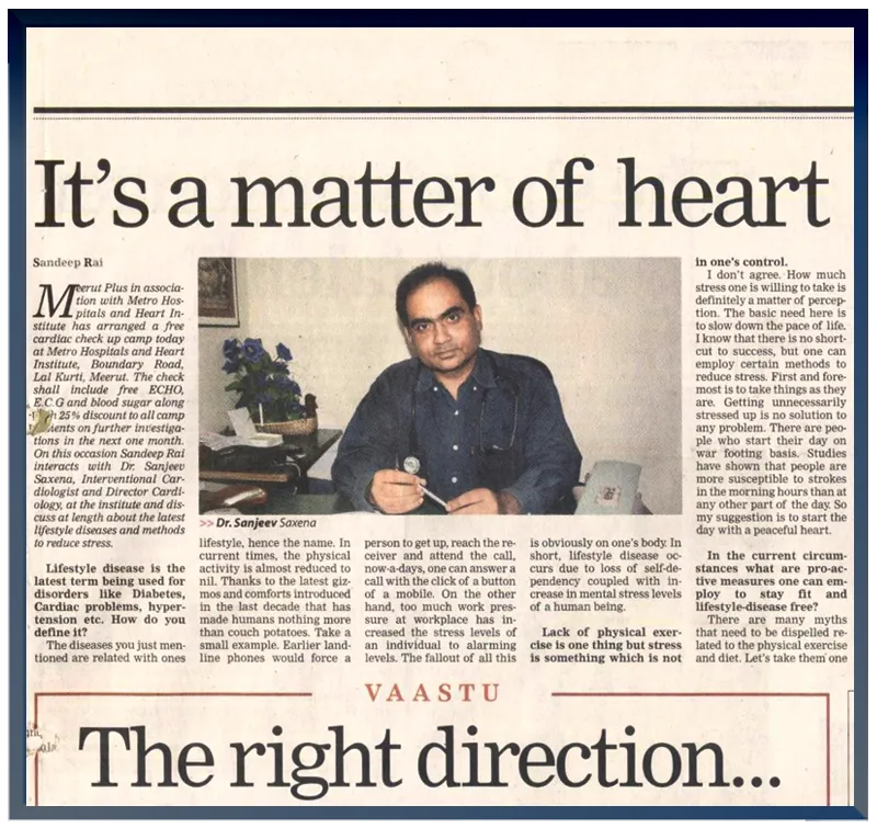 Dr. Sanjeev Saxena is a highly experienced and renowned cardiologist with over 30 years of expertise in interventional cardiology. As the Director of Cardiology at Metro Hospital and Heart Institute, Meerut, he has performed more than 30,000 complex cardiac procedures, including angioplasty, pacemaker implantation, AICD, and device closures. At Metro Hospital, Dr. Sanjeev Saxena leads with a commitment to excellence, ensuring compassionate and cutting-edge cardiac care for his patients.